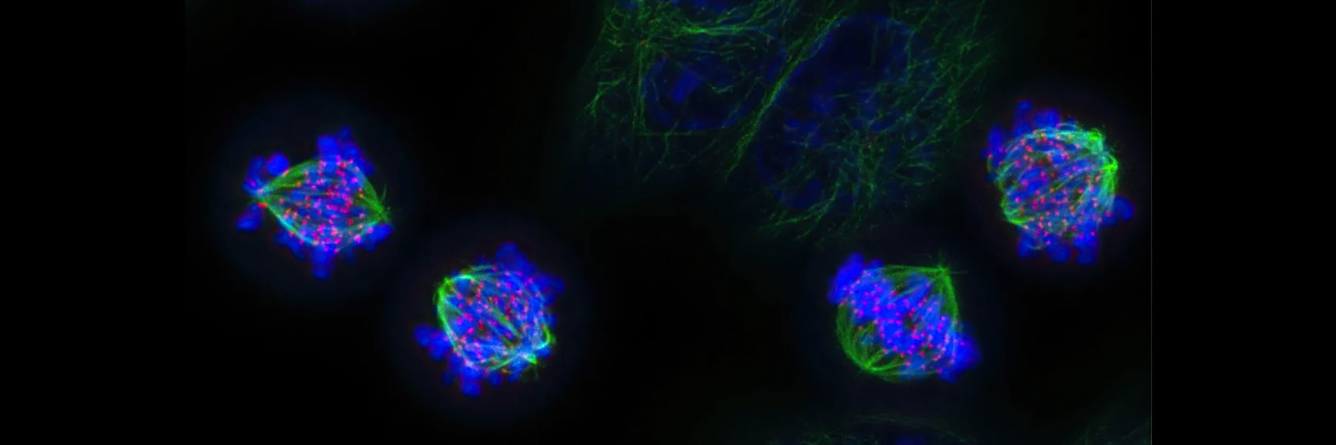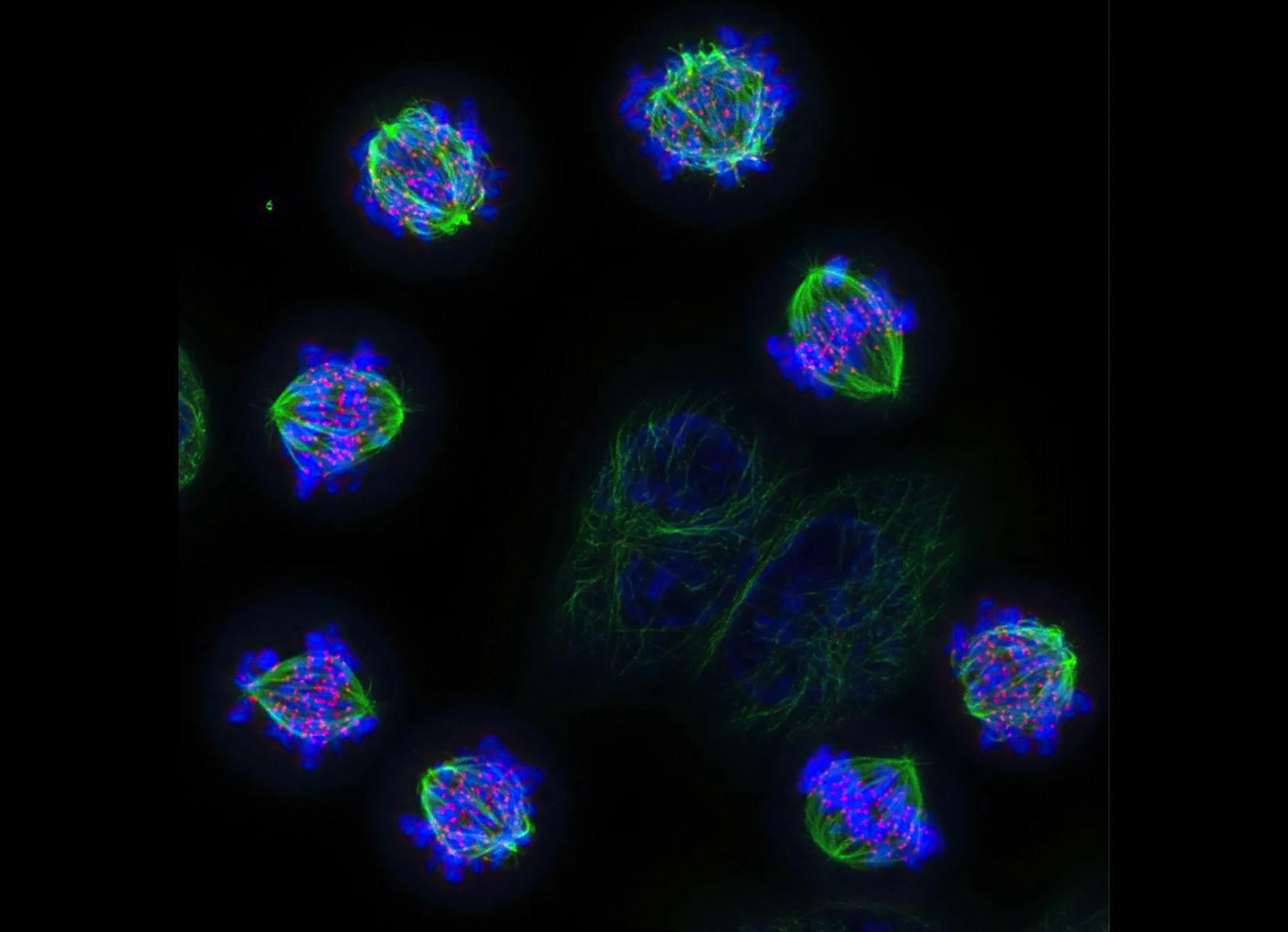 “When the cell divides, microtubules attach to the chromosomes by their kinetochores and form a beautiful structure called the mitotic spindle. The microtubules then pull individual chromosomes into the daughter cells, ensuring every new cell has a copy of each and every chromosome. This process often goes awry in cancers, causing something called chromosome instability and ever more damaged cells.”