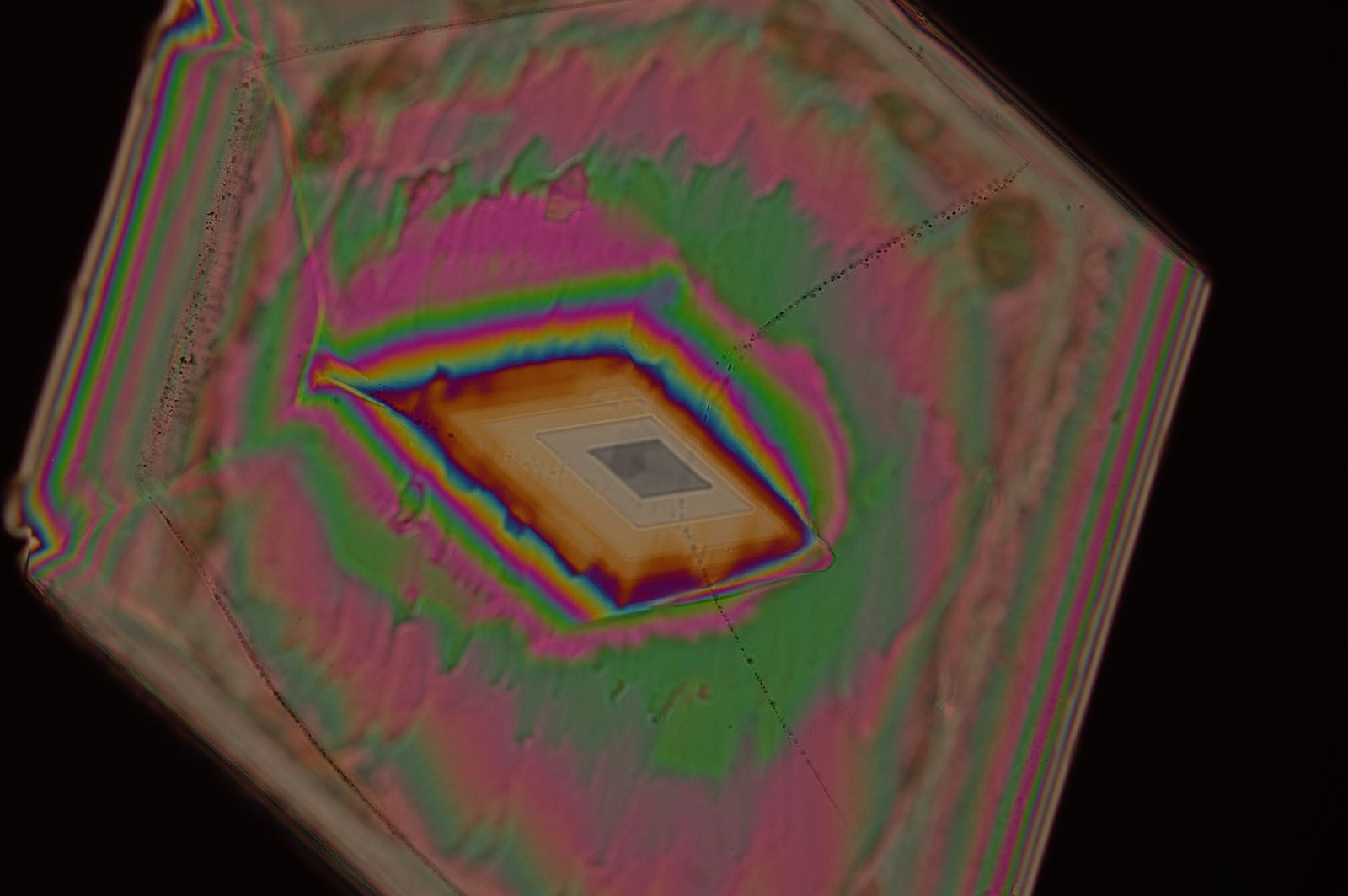 Residual stress or inhomogeneities in plastics or polymers may occur when they are manufactured. Often, the presence of such stress is unseen and can become a problem that leads to failure. Detection of stress or inhomogeneities with quality control during production can help minimize it. Stressed regions and inhomogeneities present in plastics are visible as bands of multiple colors with polarized light microscopy.